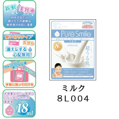※2個までゆうパケット送料240円※ 『エッセンス マスク 8枚 セット ミルク ( Milk ) 【8枚入】 ( Essence Mask ) 【Pure Smile (ピュア スマイル)】』